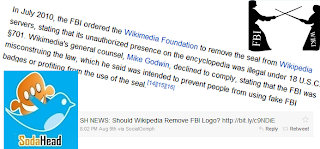 “We are compelled as a matter of law and principle to deny your demand for removal of the FBI seal from Wikipedia and Wikimedia Commons.”